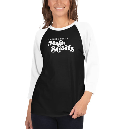 "America Needs Main Streets' White Unisex 3/4 Sleeve Raglan Shirt