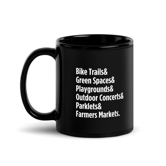 "Only on Main Street" (Greenspaces) Black Glossy Mug